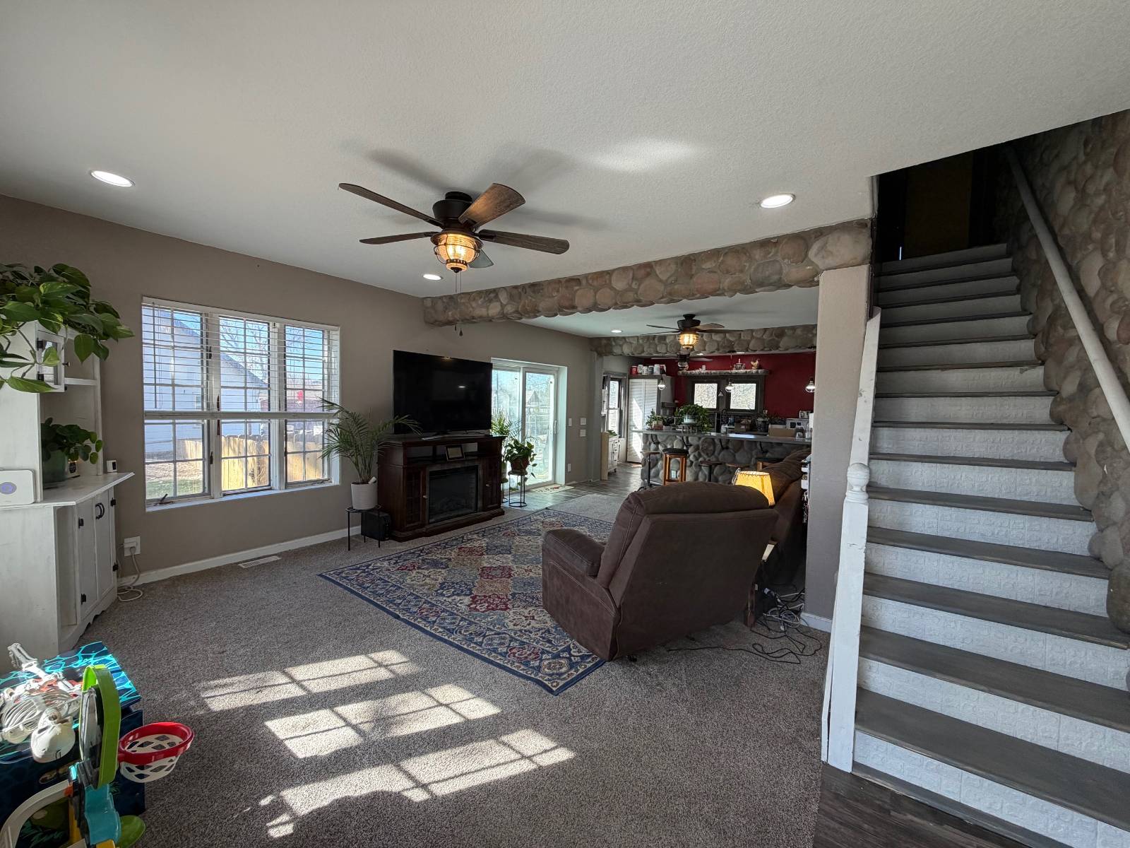 This home offers one of the most unique back yard landscaping with a large pond and special water falls. You need to see it to understand. The home offer one bedroom on the main floor which has a large main bath with jacuzzi tub and separate shower, washer & dryer, and a large walk in closet. Large open living room and kitchen area with soft close refrigerator, 5 burner gas stove, dishwasher. Upper level offers 2 bedrooms, bath and utility room and a stackable washer & dryer. Basement is mostly unfinished with some studs for rooms including a utility room area. Electricity is up to date, new furnace and ac, instant hot water heater. Detached double garage, privacy fenced back yard. Let us show you this one of a kind home.